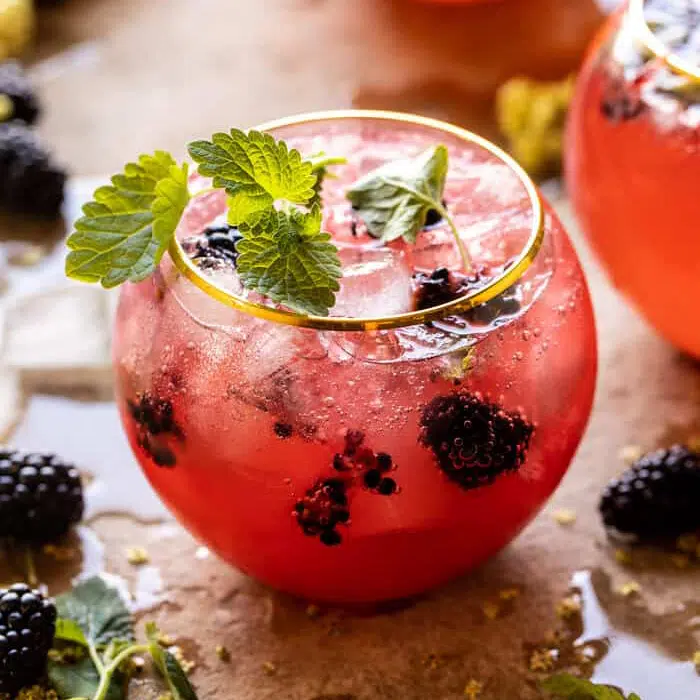 Mules are so refreshing and the flavor add-ins are endless. Create this Blackberry Champagne Mule by muddling blackberries, mint and lime juice and adding vodka. Pour into a glass with ice and top with ginger beer and champagne. Garnish with a mint leaf and enjoy.