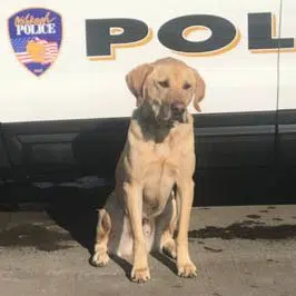 Officer Kate Mann says Legend is a two-year-old Labrador retriever, and he’s training to search for drugs and track people.