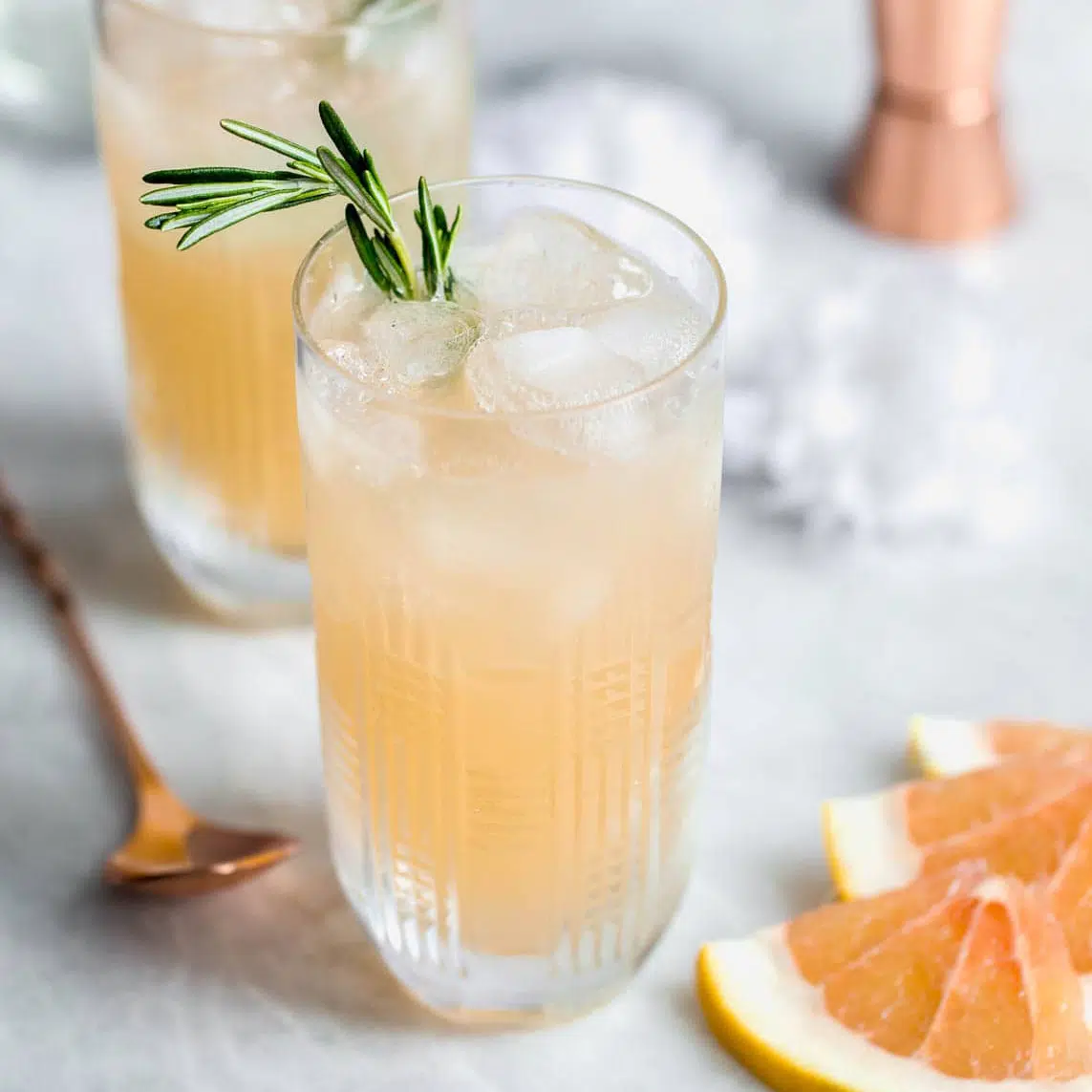 A classic, elegant cocktail… named for a classic, elegant lady. Create a ginger syrup by combining sugar, water and fresh ginger in a small saucepan over low heat. Simmer for 10 minutes and then strain out the ginger pieces. Once the syrup has reached room temperature, add it to a cocktail shaker along with ice, grapefruit juice, lemon juice and gin. Pour into a glass filled with ice and add soda water on top, stirring slowly. Garnish with rosemary.