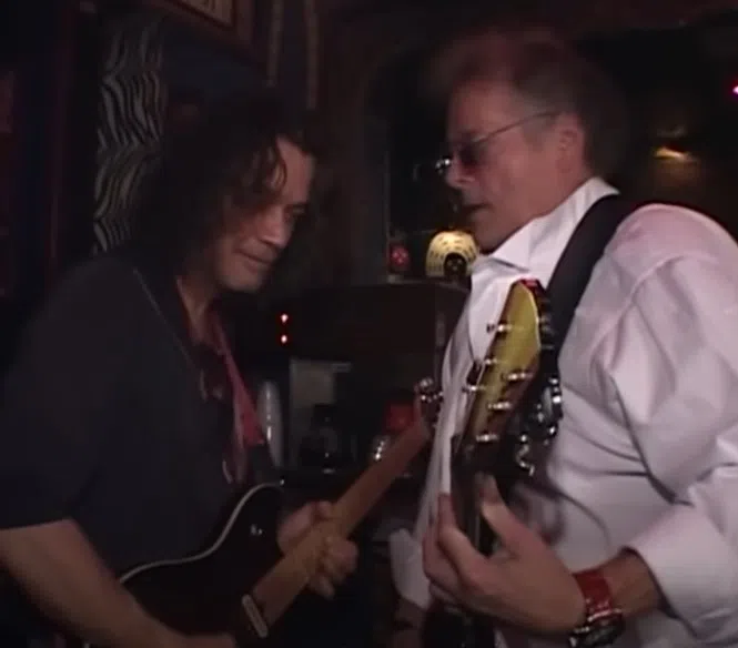 Video of Eddie Van Halen performing in 2002 with Mountain at the House of Blues in West Hollywood, California has surfaced on YouTube. The video contains never before seen footage of the incredible Eddie Van Halen playing with the incomparable Leslie West and Corky Laing of Mountain at the House of Blues in Los Angeles in 2002.