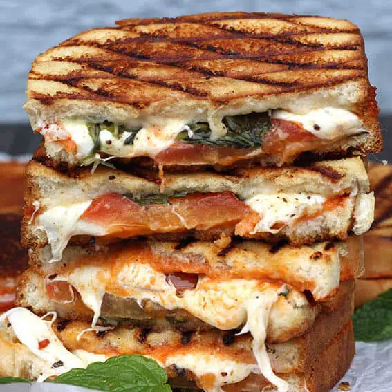 Create this fresh, delicious sandwich using marinara, fresh mozzarella, tomatoes and basil leaves. Simple and flavorful!