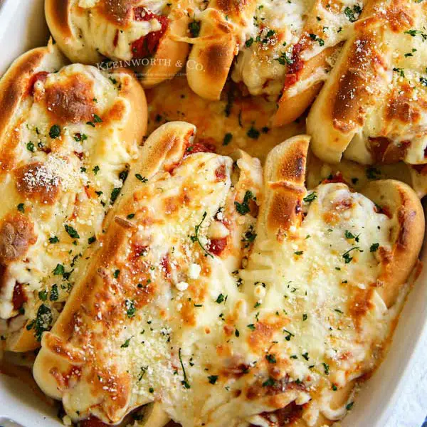 Turn the popular pasta dish into delicious sliders with this recipe! Use hawaiian dinner rolls and layer with chicken tenders, marinara sauce, provolone, mozzarella and basil. Brush a butter mixture over the top of the buns and pop in the oven for about 20 minutes. Perfect for gatherings!
