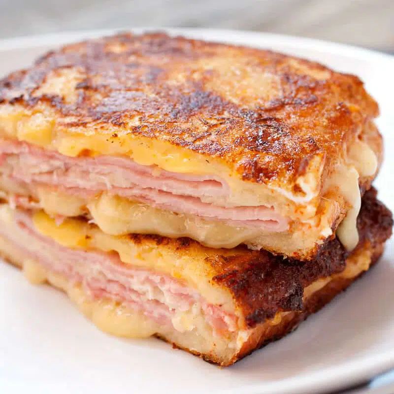 Create this classic Monte Cristo sandwich and never make a plain ole grilled cheese again! Two tricks when making this sandwich include (1) using a third slice of bread and (2) pressing the sandwich to create density.