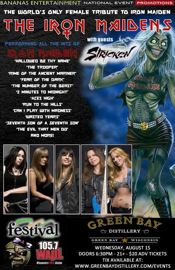 The Iron Maidens cover Iron Maiden material from all eras of the band’s career, encompassing the band’s biggest hits as well as fan favorites. The stage show includes appearances by Maiden mascot Eddie, the Grim Reaper and more.